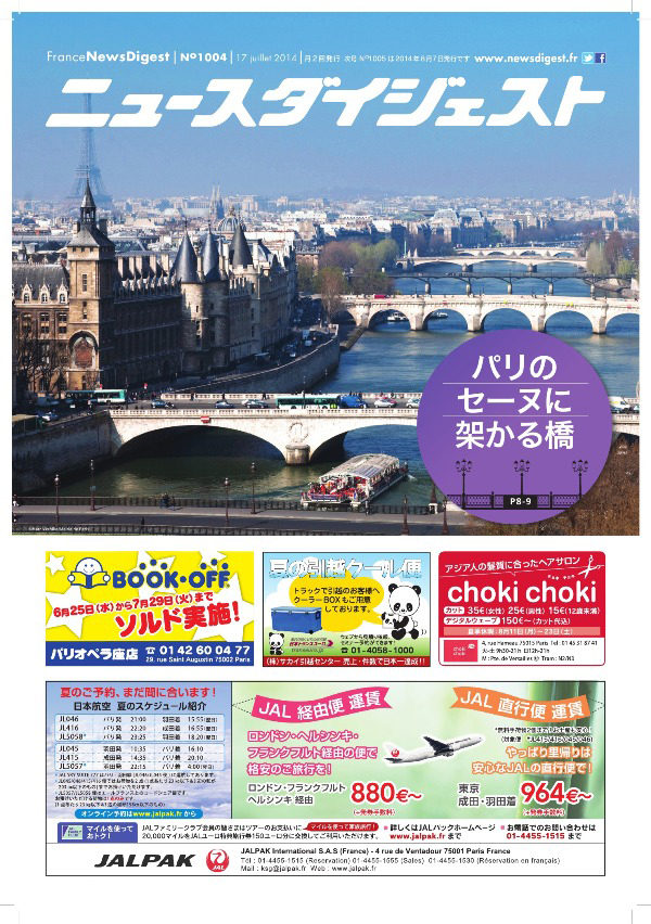 フランスニュースダイジェストは、5月15日に発行された1000号記念特集号で最優秀賞受賞です。 毎月5日、15日の月2回の発行で、来年25年目を迎える雑誌です。フランス・パリ近郊で暮らす日本人の皆さんにとって、 とても貴重な情報源となっていることが1000号記念特集号のさまざまなコンテンツから読み取れます。 今後、ますます読者の皆さんに必要とされ愛される雑誌になることを期待しております。