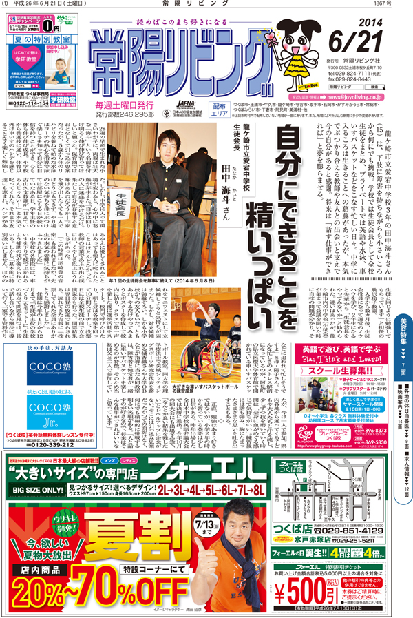 「常陽リビング」は1977年の創刊以来、昨年末で1844号を発行してまいりました。東日本大震災時を除き、一度も欠かすことなく毎週土曜日に新聞折込で約25万の読者の皆さまにお届けしております。