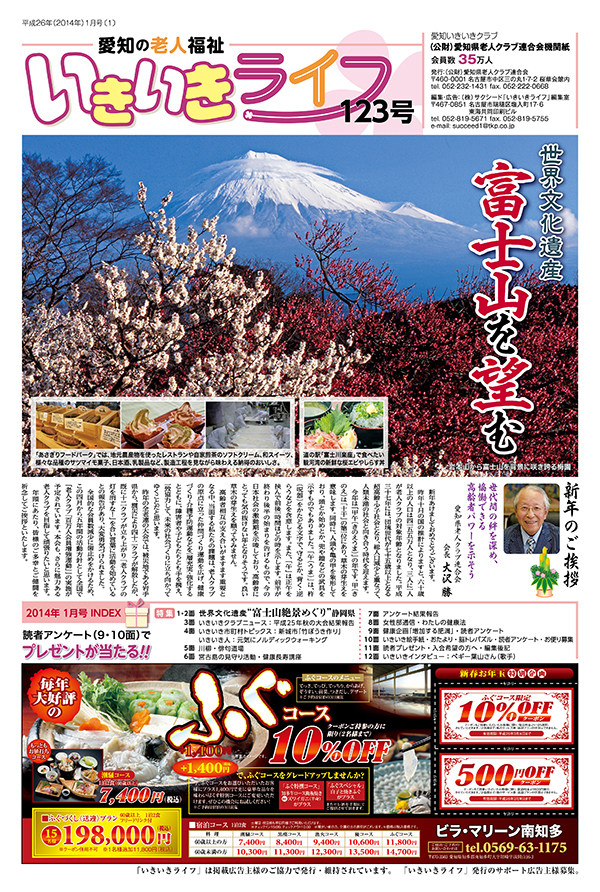 愛知県老人クラブ連合会機関紙として県下会員向けに28万部発行し、役員さんが手渡しで配布する元気の出る機関紙です。