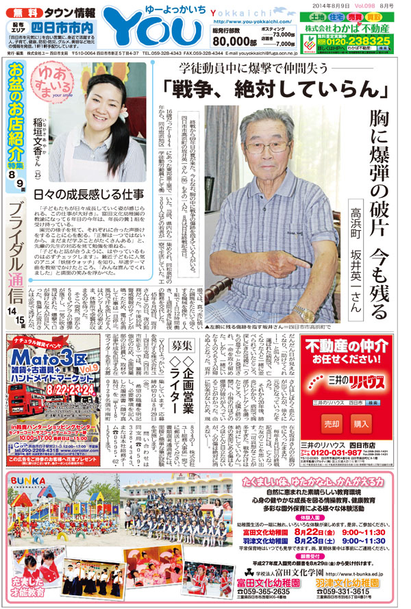 「四日市を元気に!」を合言葉に、地域の情報を発信しています。街ネタ、子育て、健康などタブロイド版16ページに特色を持たせ、読者の方が元気になることがテーマです。また、地元警察署の協力で連載の「南署だより」など、独自の取材を展開しています。