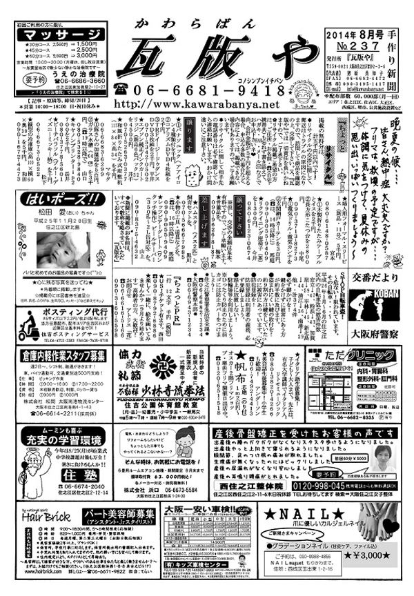普通のおばちゃん達がお友達は多いほうが人生楽しいと思い、突然井戸端会議を紙面に・・・と、ミニコミ誌を創刊。早20年になりました〜〜とにかく、一人でも多くの人に読んで楽しんでいただけたら・・と毎月、読者の人より背中を押されて継続できますことを、今さらですが、感謝しております。一度読んでみてくださいね!
