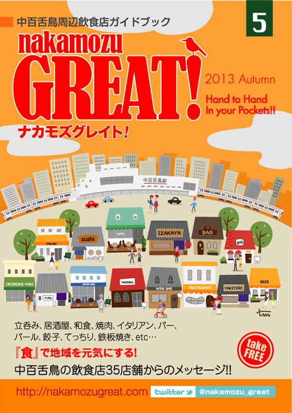 ナカモズグレイト!は『 中百舌鳥をもっと盛り上げたい!』 『自分たちの声が反映されるメディアを』という地元飲食店主たちの熱い想いから生まれた中百舌鳥駅周辺飲食店ガイドです。