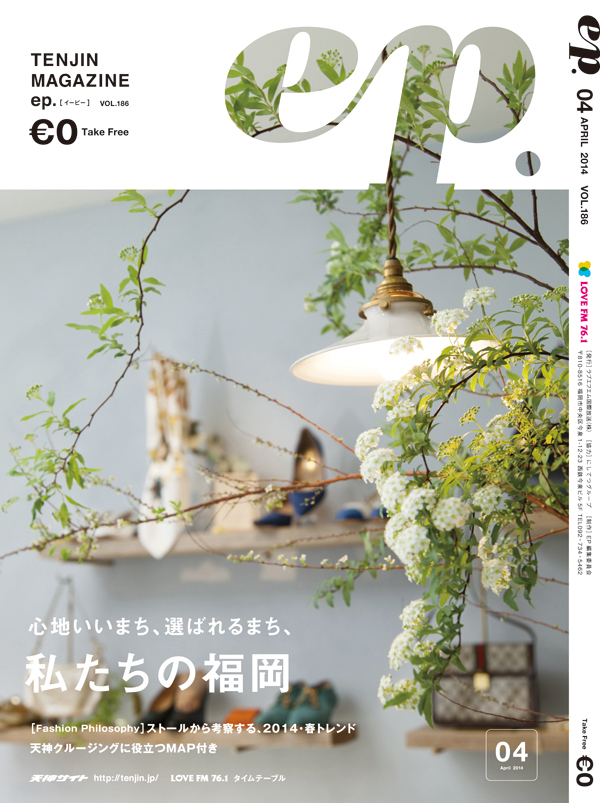 九州一の繁華街、福岡天神。九州中のヒトコトモノが集まるこのまちで、15年以上に渡り発行し続けている長寿ペーパーです。西鉄高速バス運行座席シートポケット(九州一円)にイン!という、特異な配布形態と、145000部という爆発的な媒体力が自慢です。最新のトレンド情報から、伝え続けたいまちの宝ものまで、このまちの「今」にフォーカスしており、その表現スタイルにも15年変わらない「ep.らしさ」を貫き、多くのファンを獲得しております。とりわけ、情報リテラシーの高い読者にディープなファンが多いことが、ep.の誇りでもあります。