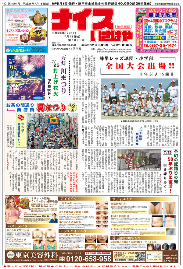当紙は、長崎県諫早市の無料タウン紙として1981年3月創刊以来現在1091号を発行。