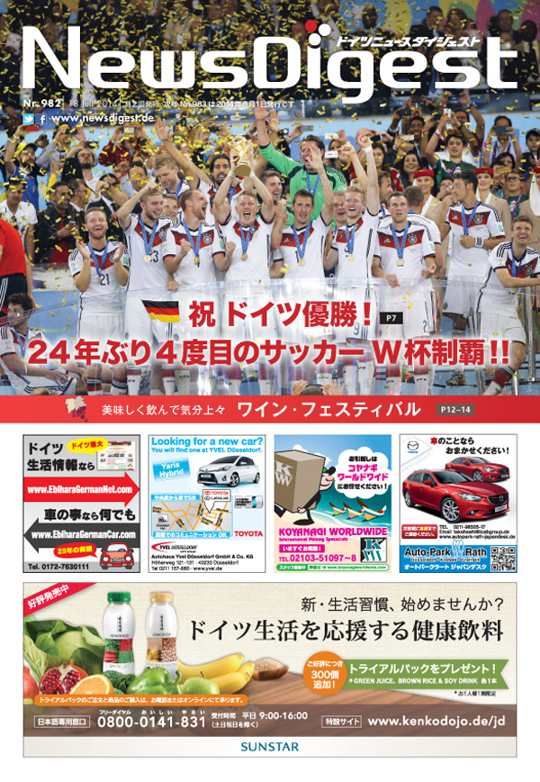 ドイツニュースダイジェストは、在独邦人ならびにドイツに興味のある世界中の日本人、日本語を学ぶドイツ人など、幅広い読者を対象に、ドイツのニュース、生活・観光・ビジネス・都市情報、旬のブンデスリーガ日本人選手情報など、ホットな話題を様々な視点からお届けしています。