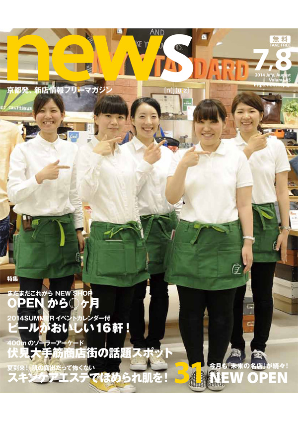 news(京都府) 無料誌 2006年に創刊した「京都発、新店情報フリーマガジン『news(にゅーず)』」です。毎号20~30店舗の新店紹介ページを中心に、たくさんのコラムや、季節にあった企画広告で構成しています。 |